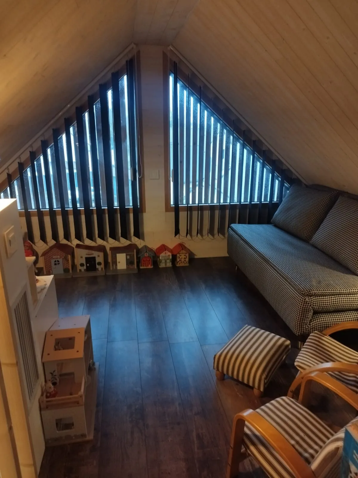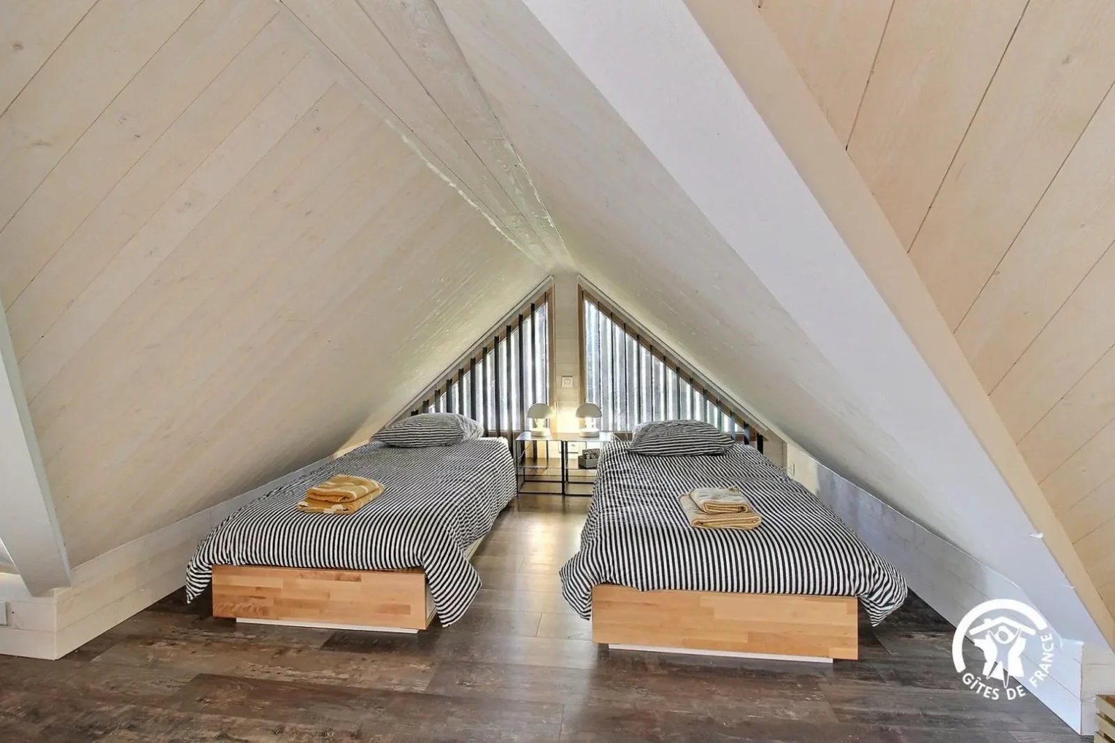La villa dispose de quatre suites, chacune avec sa salle de bain privative, ainsi que d’un dortoir chaleureux sous les toits, également doté de sa propre salle de bain.